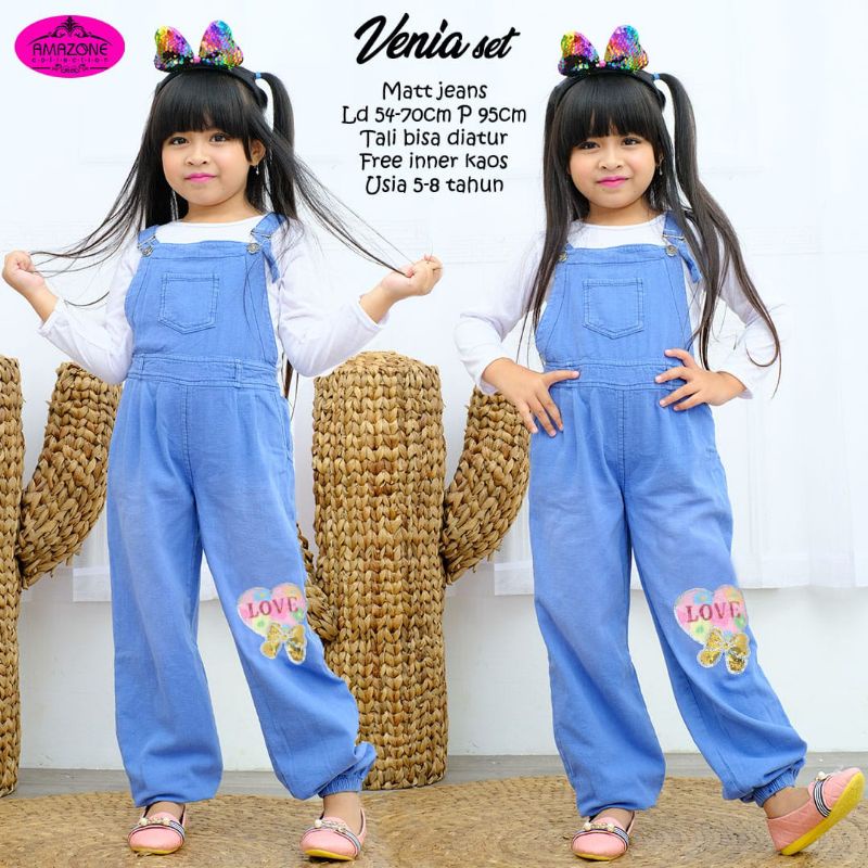 Harga ATHEA Set Jumpsuit Jeans Anak Usia 5-7 Tahun Plus Inner