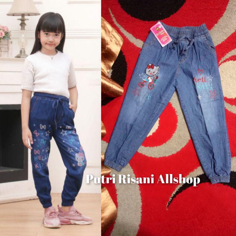Celana Joger Jeans Anak Perempuan Usia 6-13 Tahun