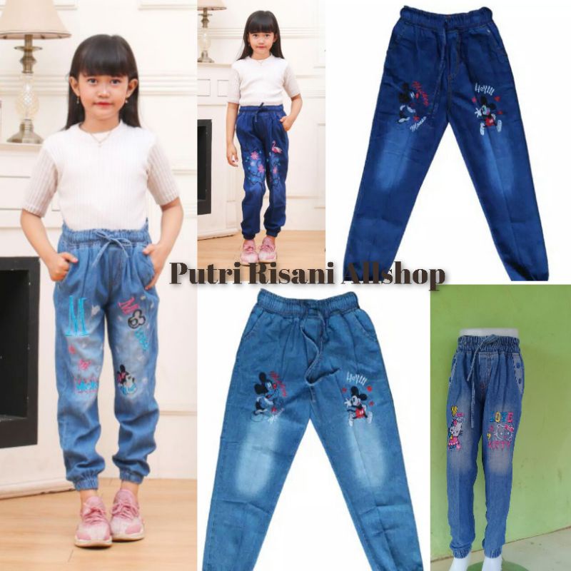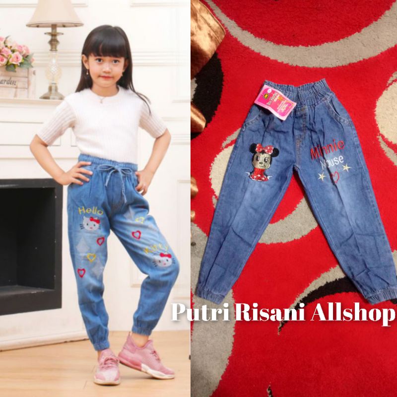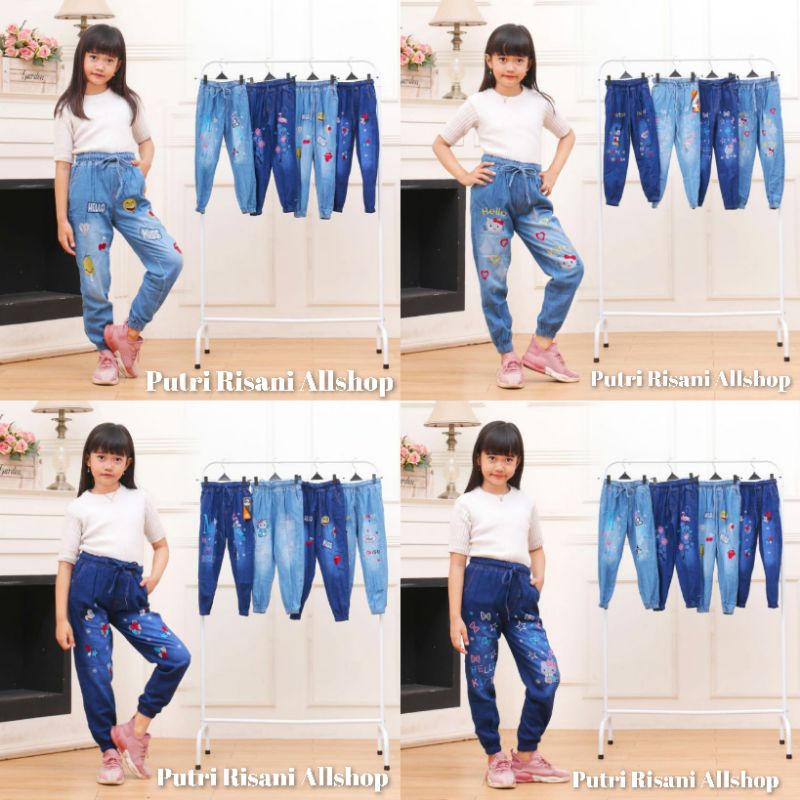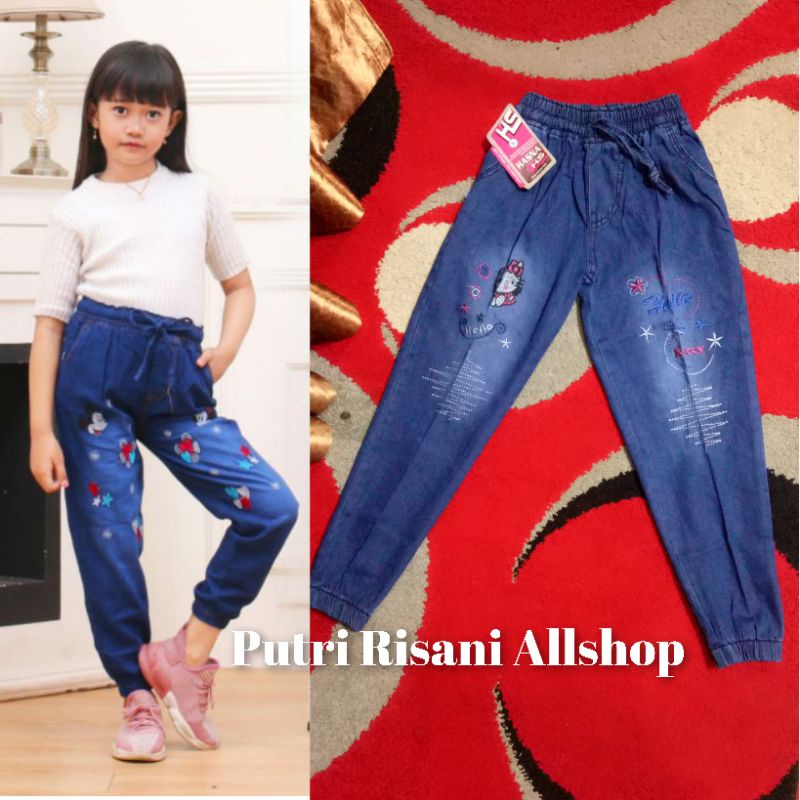 Harga Celana Joger Jeans Anak Motip Bordiran Bahan Soft Jeans Size 1.2.3.M.L.XL.24.25.26. Umur ±1-13 Tahun