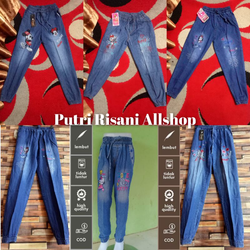 Kekurangan - Kekurangan membeli Celana Joger Jeans Anak Motip Bordiran Bahan Soft Jeans Size 1.2.3.M.L.XL.24.25.26. Umur ±1-13 Tahun di Toko ini