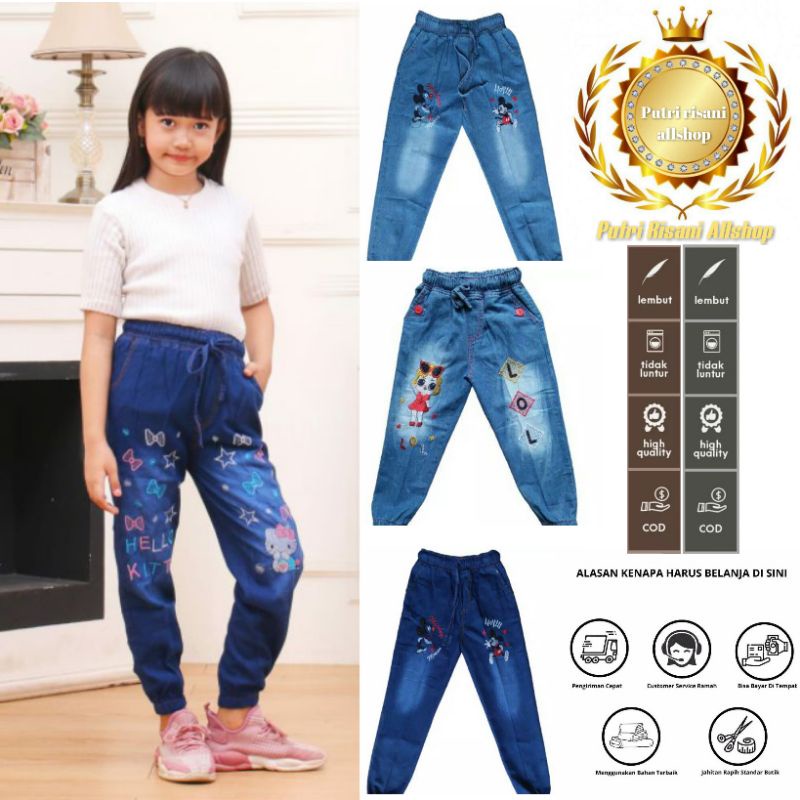 Kelebihan - Kelebihan membeli Celana Joger Jeans Anak Motip Bordiran Bahan Soft Jeans Size 1.2.3.M.L.XL.24.25.26. Umur ±1-13 Tahun di Toko ini