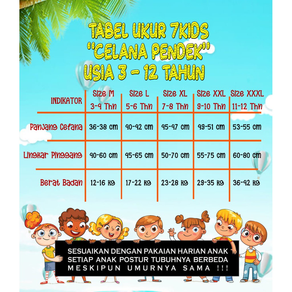 Produk ini memiliki 5 Variasi UKURAN yaitu : M:3-4th,Bb12-16kg,L:5-6th,Bb17-22Kg,XL:7-8th,Bb23-28kg,XXL:9-10th,Bb29-35kg,XXXL:11-12th,Bb36-4,