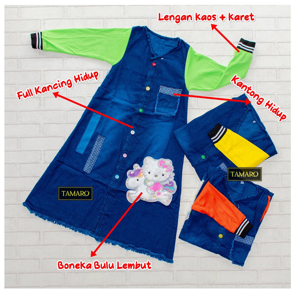 Harga Gamis Jeans Anak Boneka Bulu lembut Usia 4-10 Tahun