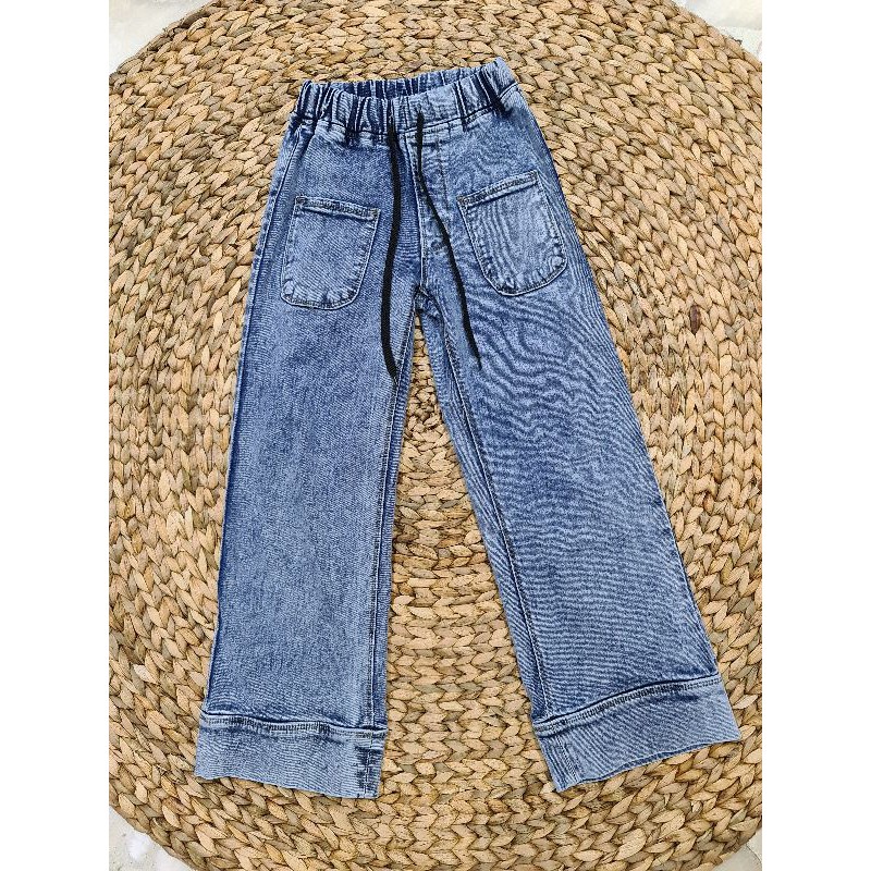 Harga Khlove89 Aener Celana Panjang Kulot Kantong Depan Jeans Anak Tanggung Perempuan Pinggang Full Karet