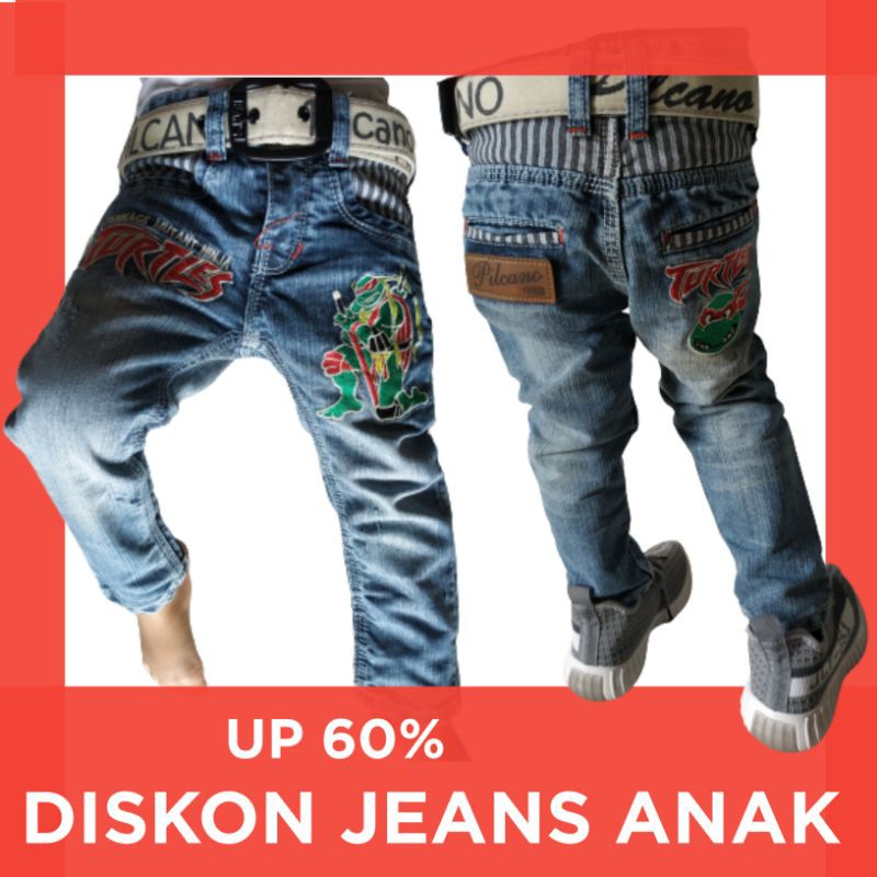 Harga Pilcano Jeans Anak Laki Laki Karakter Ninja Turtles, Warna biru Untuk 3-13 tahun, Levis Anak Cowok