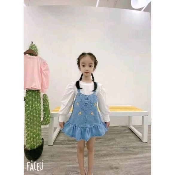 Alasan kenapa harus beli Setelan Atasan Lengan Tangan Balon dan Overall Rok Jeans Anak import sekarang