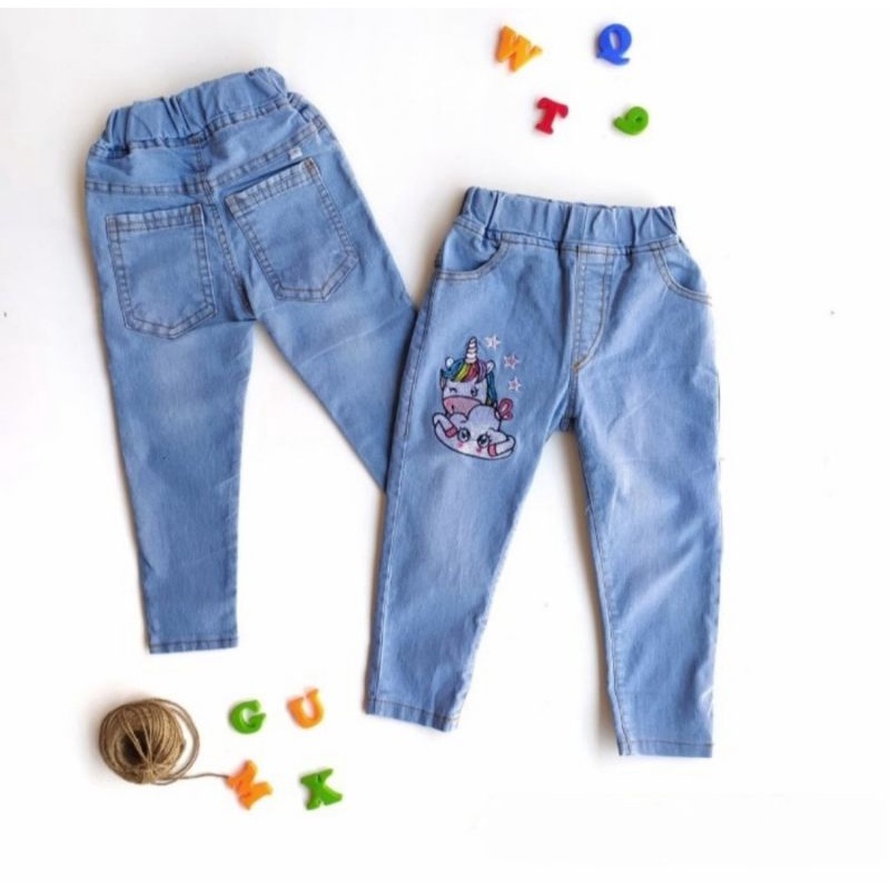 Harga Celana Panjang Skinny Jeans Anak Perempuan 2 3 4 5 6 7 8 Tahun Bahan Tebal Melar Bordir Unicorn