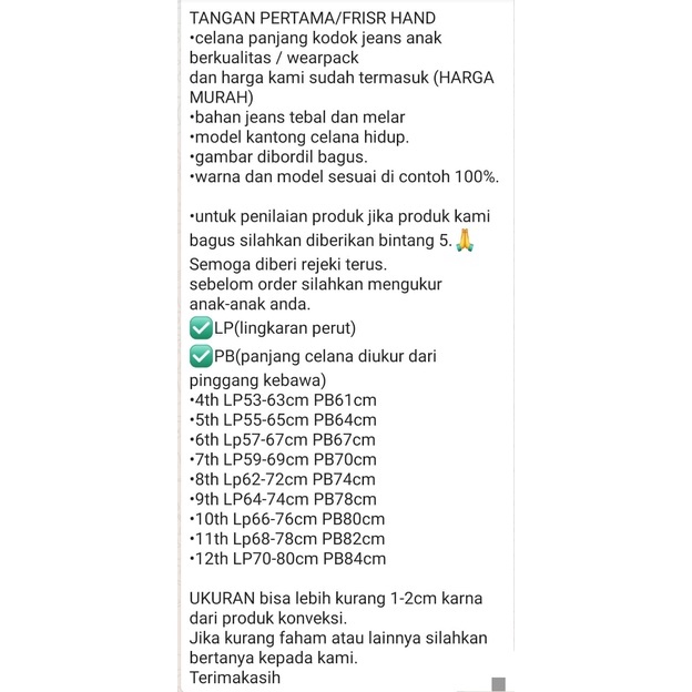 - Produk ini tidak sedang Flash Sale, tidak semua Seller suka Flash Sale, saya rasa ini bukan kekurangan, Jika Anda anggap Harga Rp. 120.999,00 itu murah untuk CKPJ MEOW/ wearpack/ overall promo celana panjang kodok jeans anak berkualitas terlaris/ jeans anak 6-12th ya ambil saja