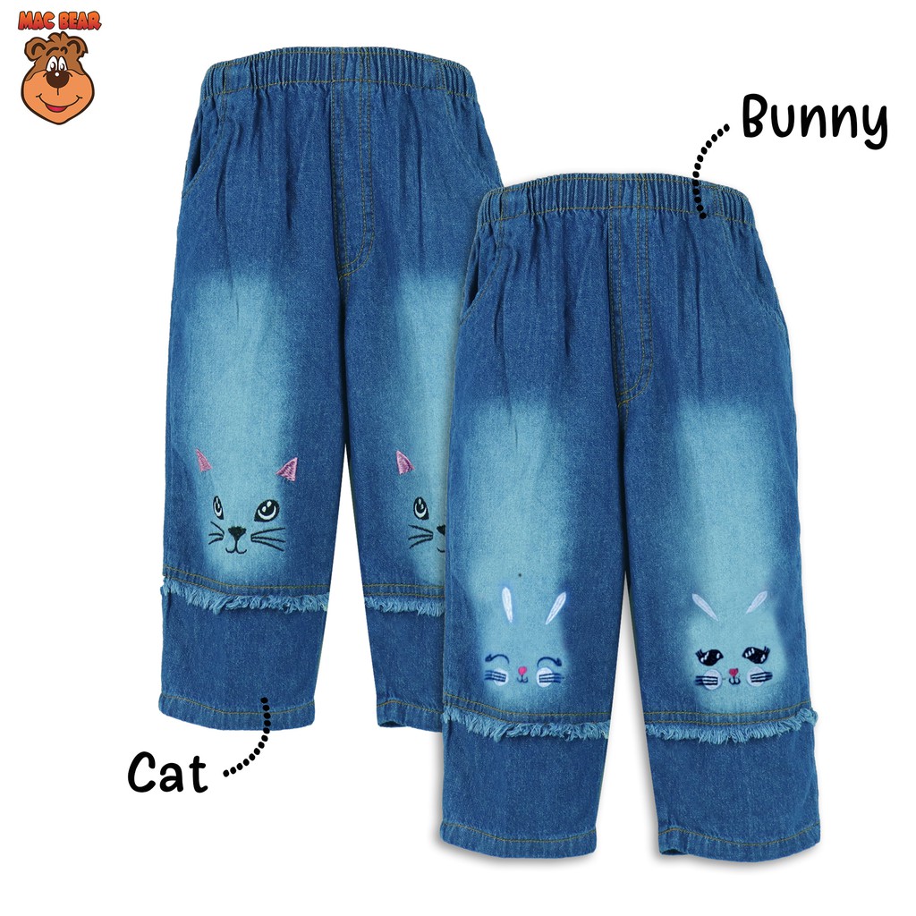 Harga MacBee Jeans Anak Perempuan Bordir Cute Bunny & Cat 6 bulan -12 tahun