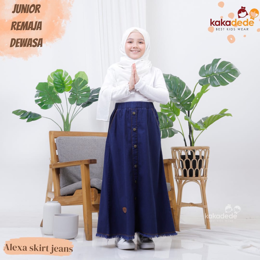 Kelebihan - Kelebihan membeli Rok Panjang Jeans Anak Perempuan Umur 5 - 10 Tahun Rok Jeans Anak Cewek Alexa Skirt Junior Series by KakaDede di Toko ini