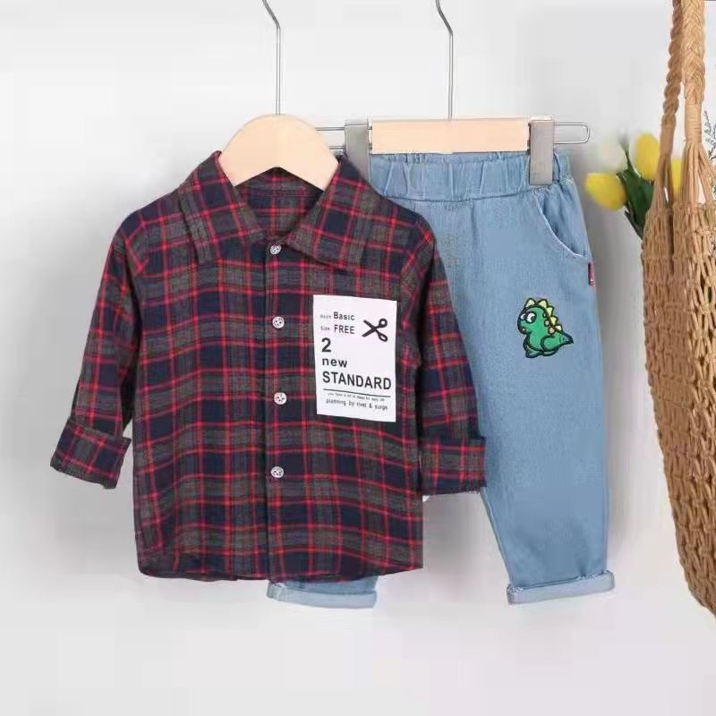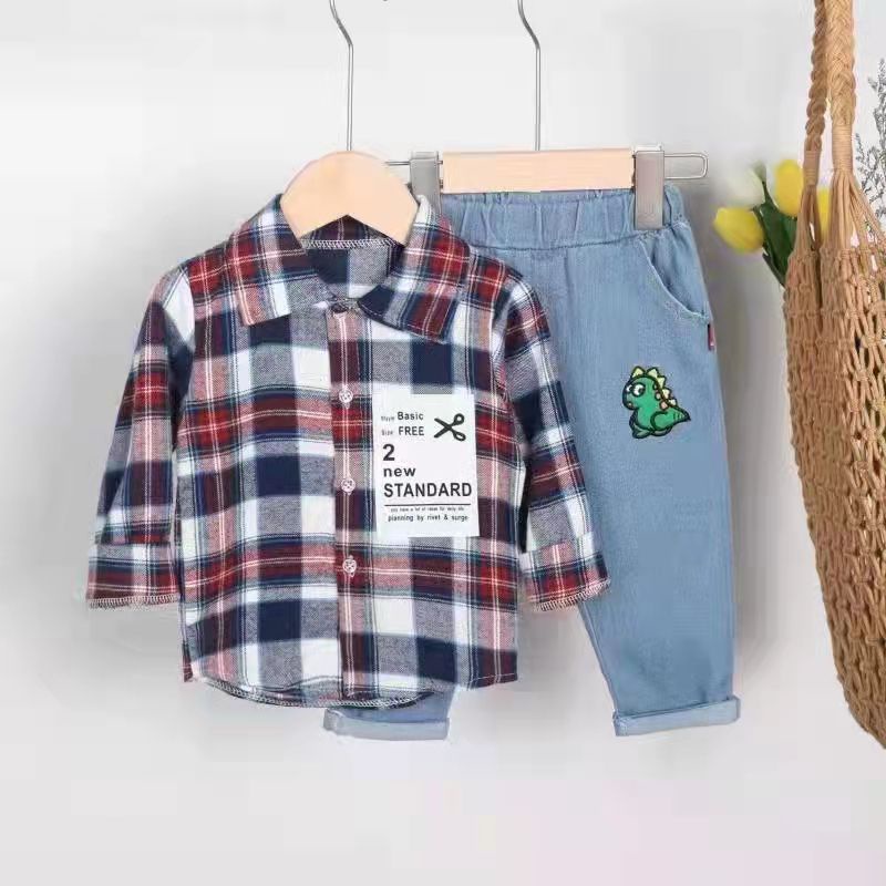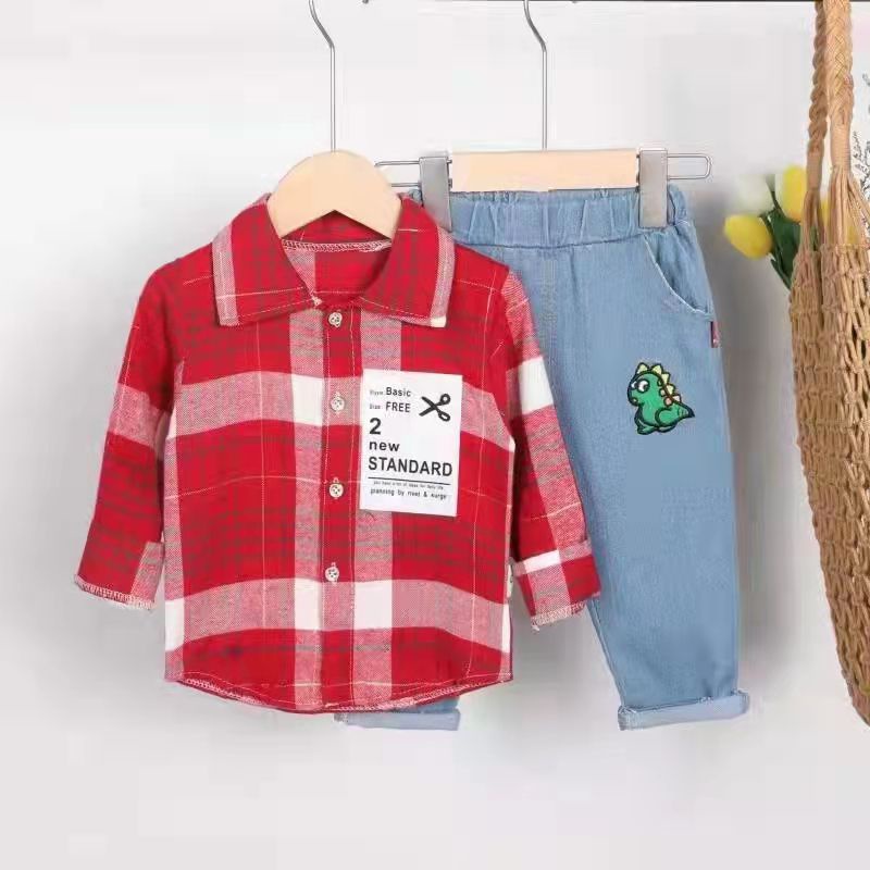 Harga SEt jeans anak cowo import flanel (1-2th)