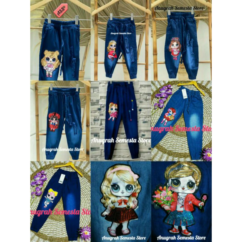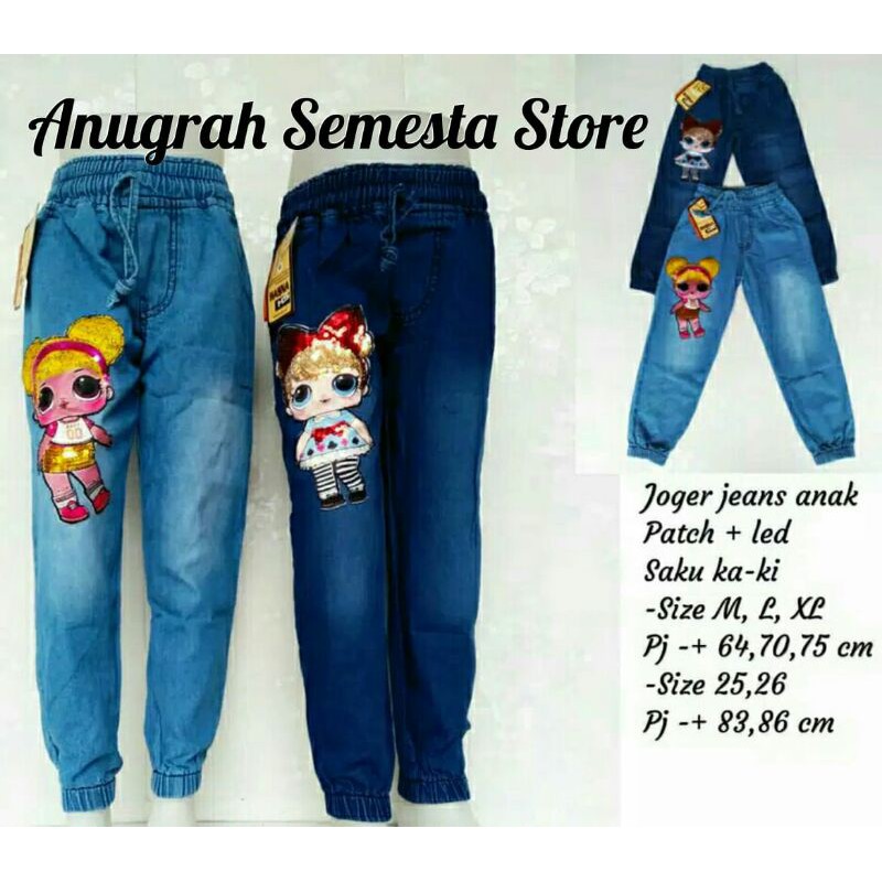 Harga Celana Joger Jeans Anak Perempuan Motip Karekter Bahkan LED Shoft Jeans Ukuran 1. 2. 3. 4.5.6 M.L.XL 24.25.26 Umur ( ± 1-13 Tahun )